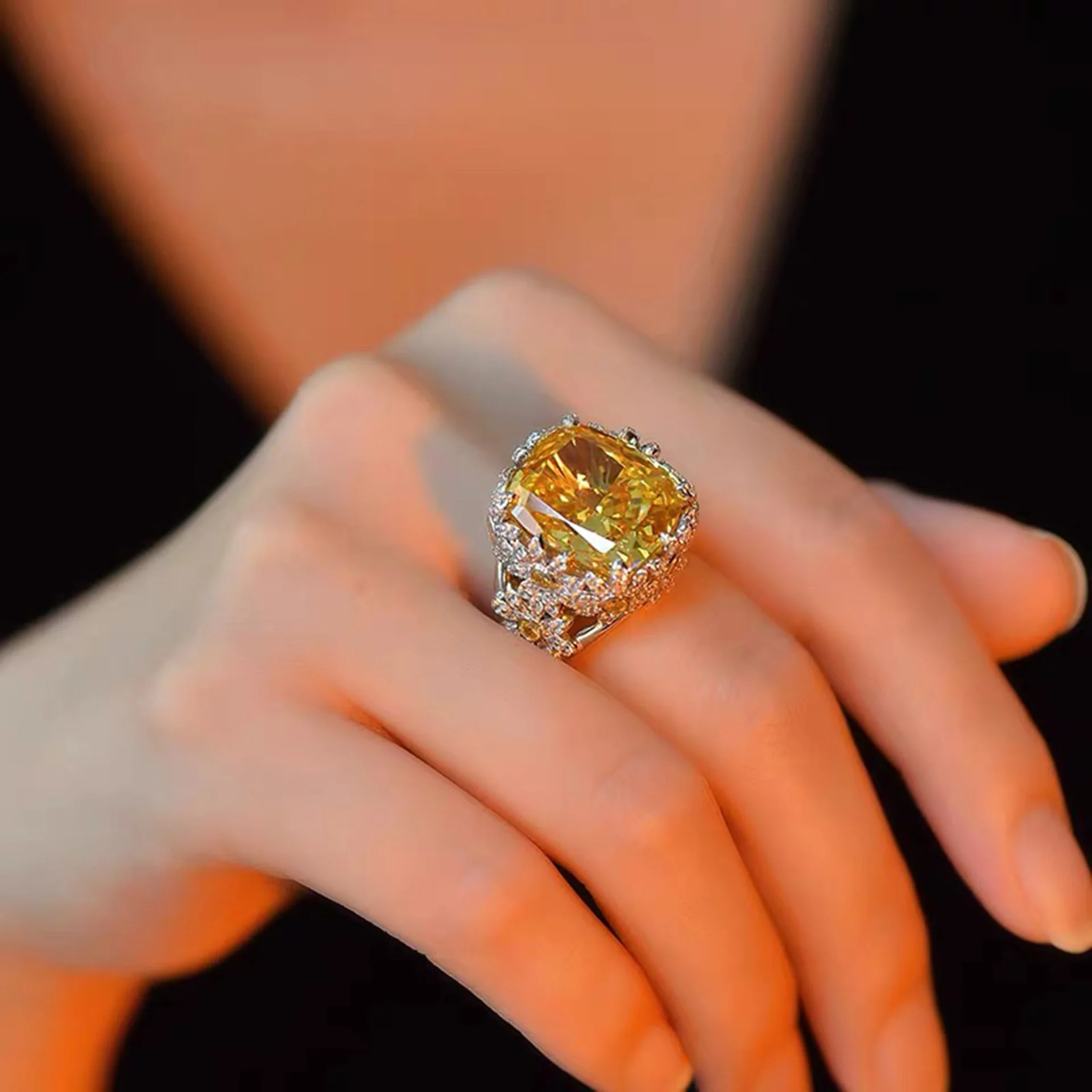 The Daisy Luxe Radiant Ring brings together modern sophistication and delicate floral charm. Featuring a radiant ice-cut high-carbon synthetic diamond zircon at its center, this cocktail ring sparkles brilliantly from every angle. Elegant daisy details encircle the elevated stone, adding femininity and style to a statement piece you can wear every day or for special occasions.