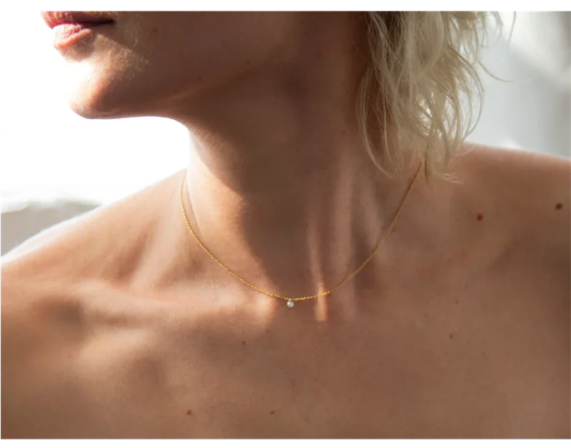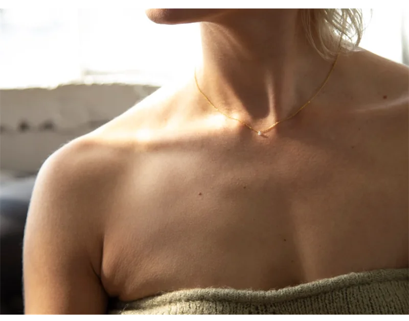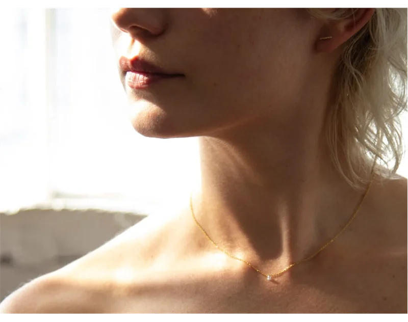 The Éclissa Necklace is crafted for the woman who loves a touch of radiance without the noise. Designed in 14k gold-filled metal and finished with a delicately cut 3mm zircon, this necklace creates the illusion of a floating gem — a soft, luminous sparkle that rests beautifully against the skin.